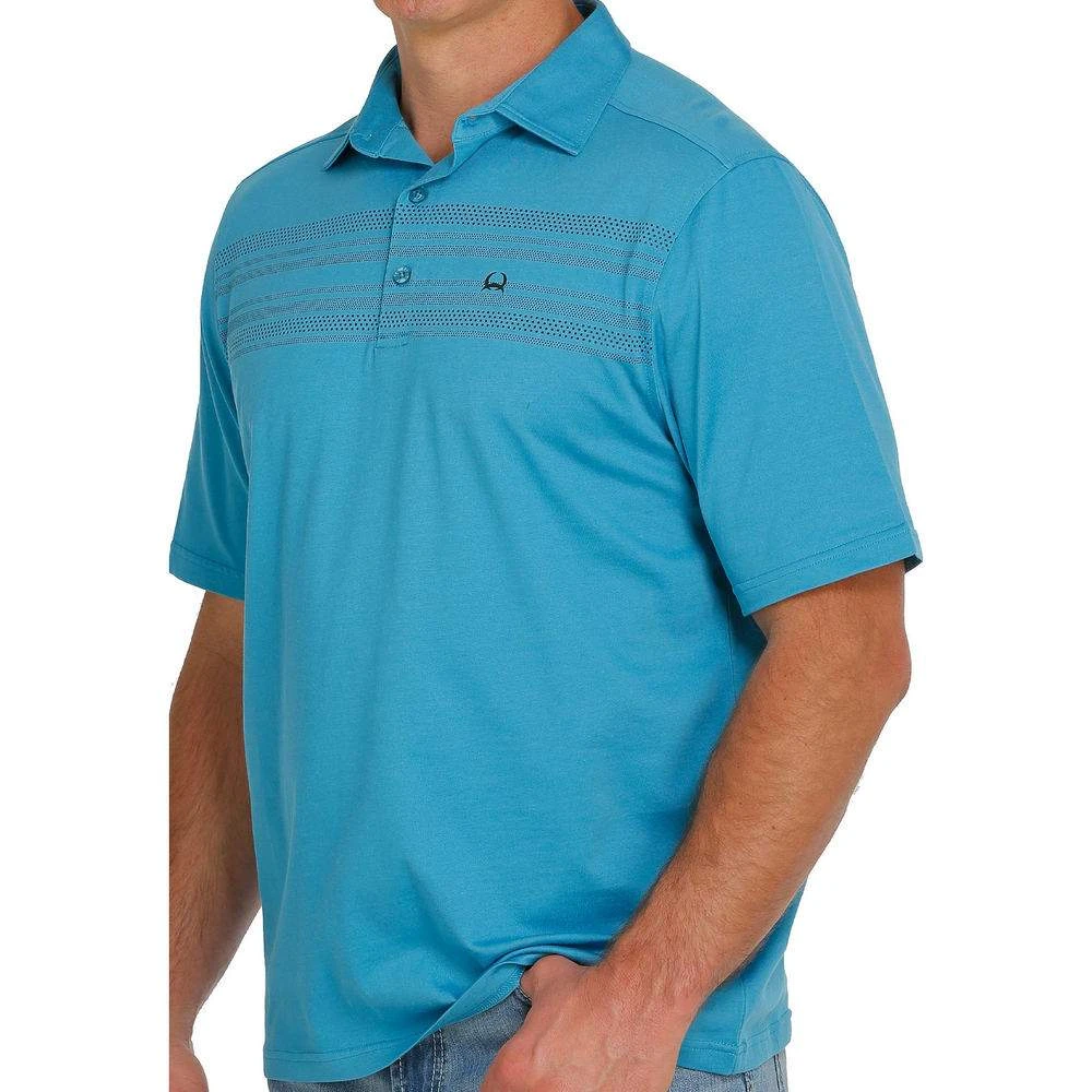 Make a stylish statement wearing a blue Arenaflex polo shirt engineered by CINCH. Lightweight, breathable poly-spandex construction features a screen print, logo heat transfer and royal blue buttons.