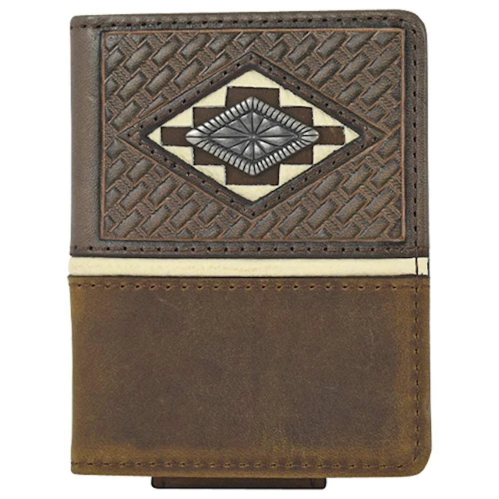 - Basketweave tooling with Aztec concho and ivory trimÂ