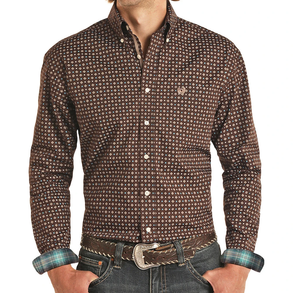 Panhandle Men’s Roughstock Brown Printed Buttondown