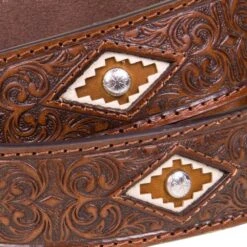 Men`s Tooled Scroll Leather Belt W/ Diamond Cutout Detailing