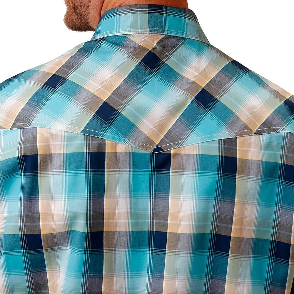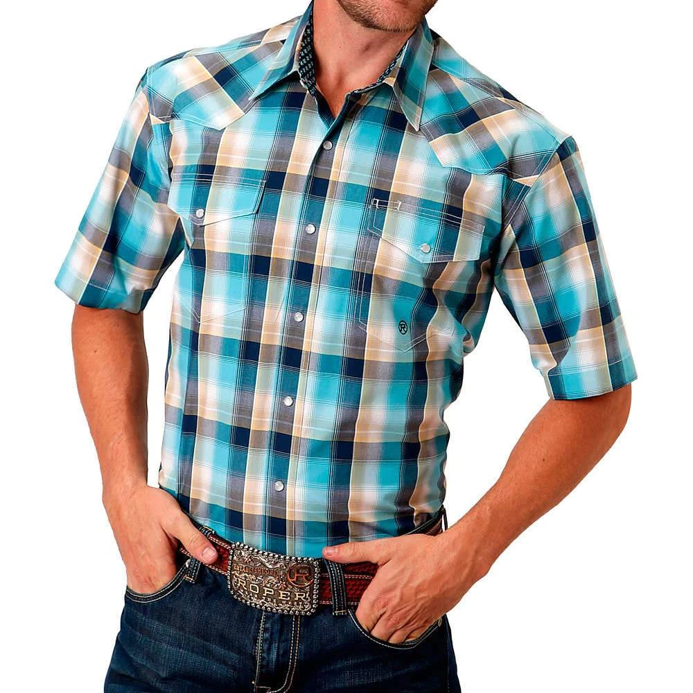 Roper Men’s Blue And Tan Plaid Short Sleeve Shirt With Snaps