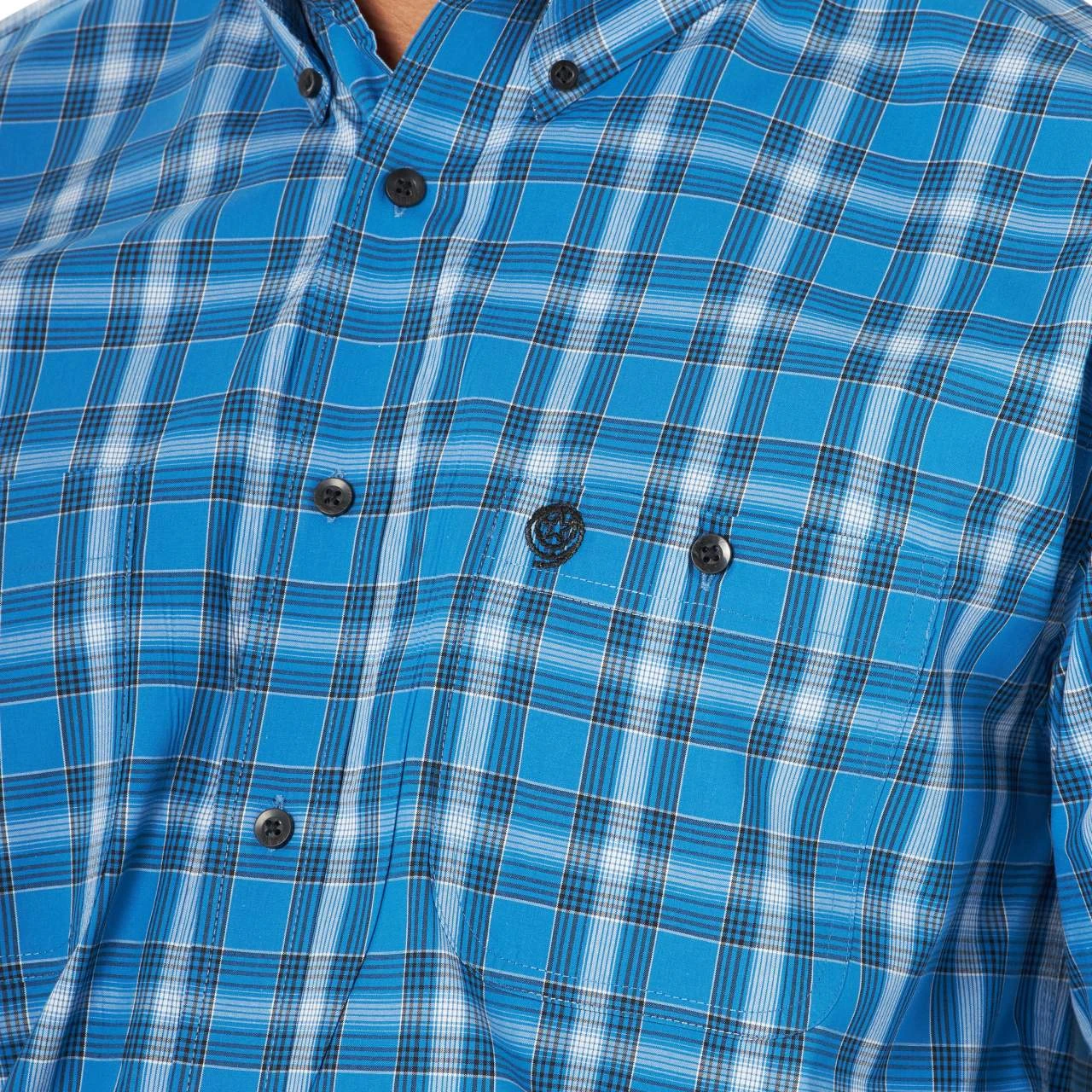 Wrangler Men’s George Strait Cobalt Plaid Two Pocket Buttondown