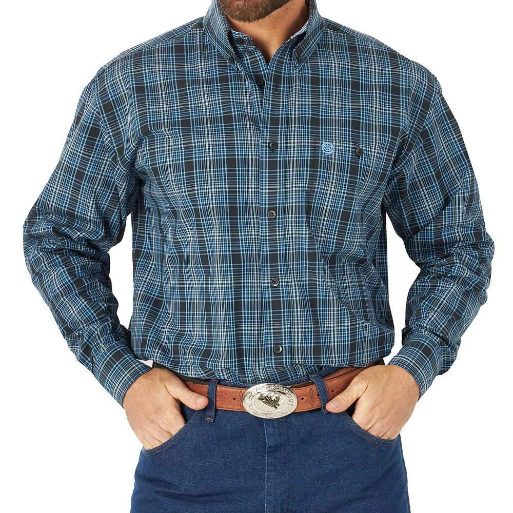 Wrangler Men’s George Strait Navy Plaid Buttondown